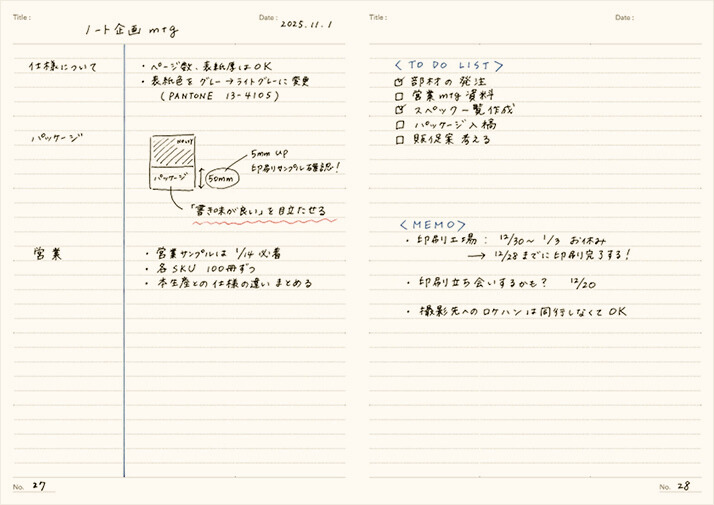 | 判型 | A5 | レイアウト | 6.0mm横罫/3.5mm方眼/無地 |