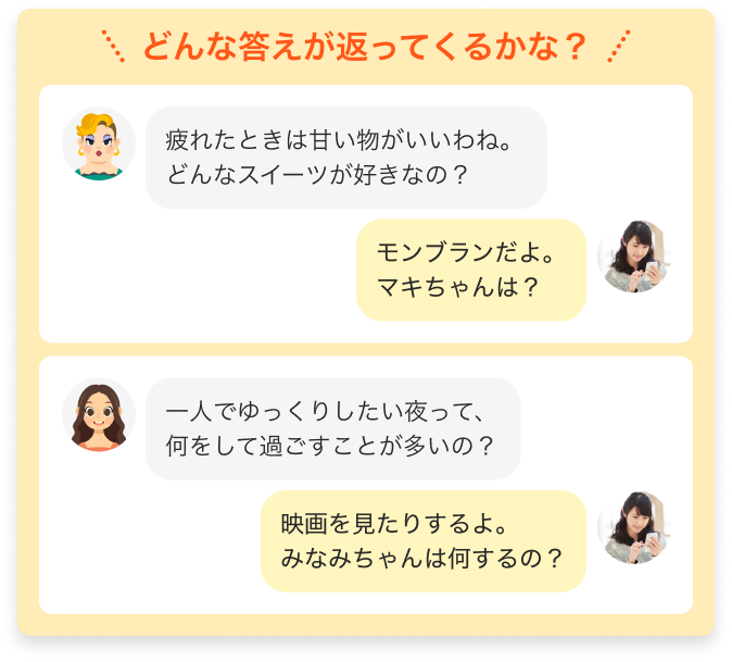 日記と直接関係のない話題でも、AIパートナーとの会話を楽しんで大丈夫です。質問に答えるだけでなく、たまにはあなたから質問してみてください。思いがけない、楽しい会話が広がるかもしれません。